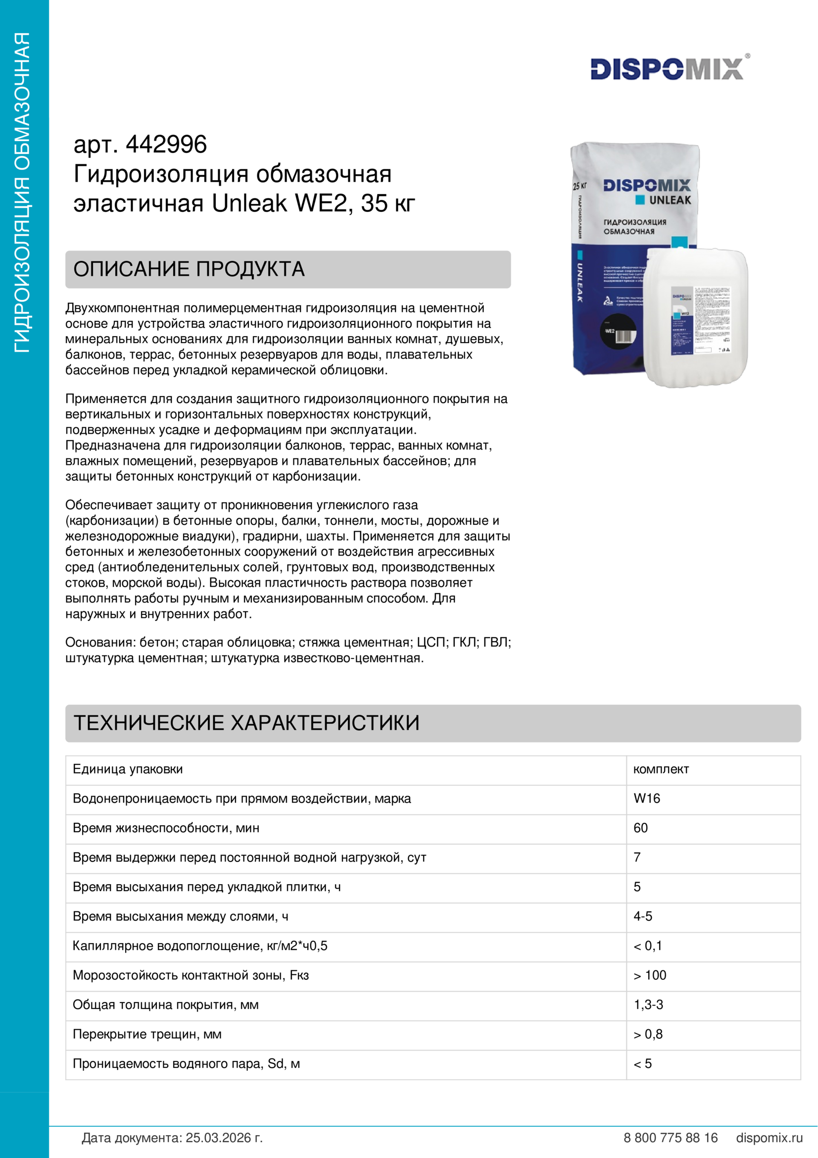 Двухкомпонентная полимерцементная гидроизоляция на цементной основе для устройства эластичного гидроизоляционного покрытия на минеральных основаниях для гидроизоляции ванных комнат, душевых, балконов, террас, бетонных резервуаров для воды, плавательных бассейнов перед укладкой керамической облицовки.