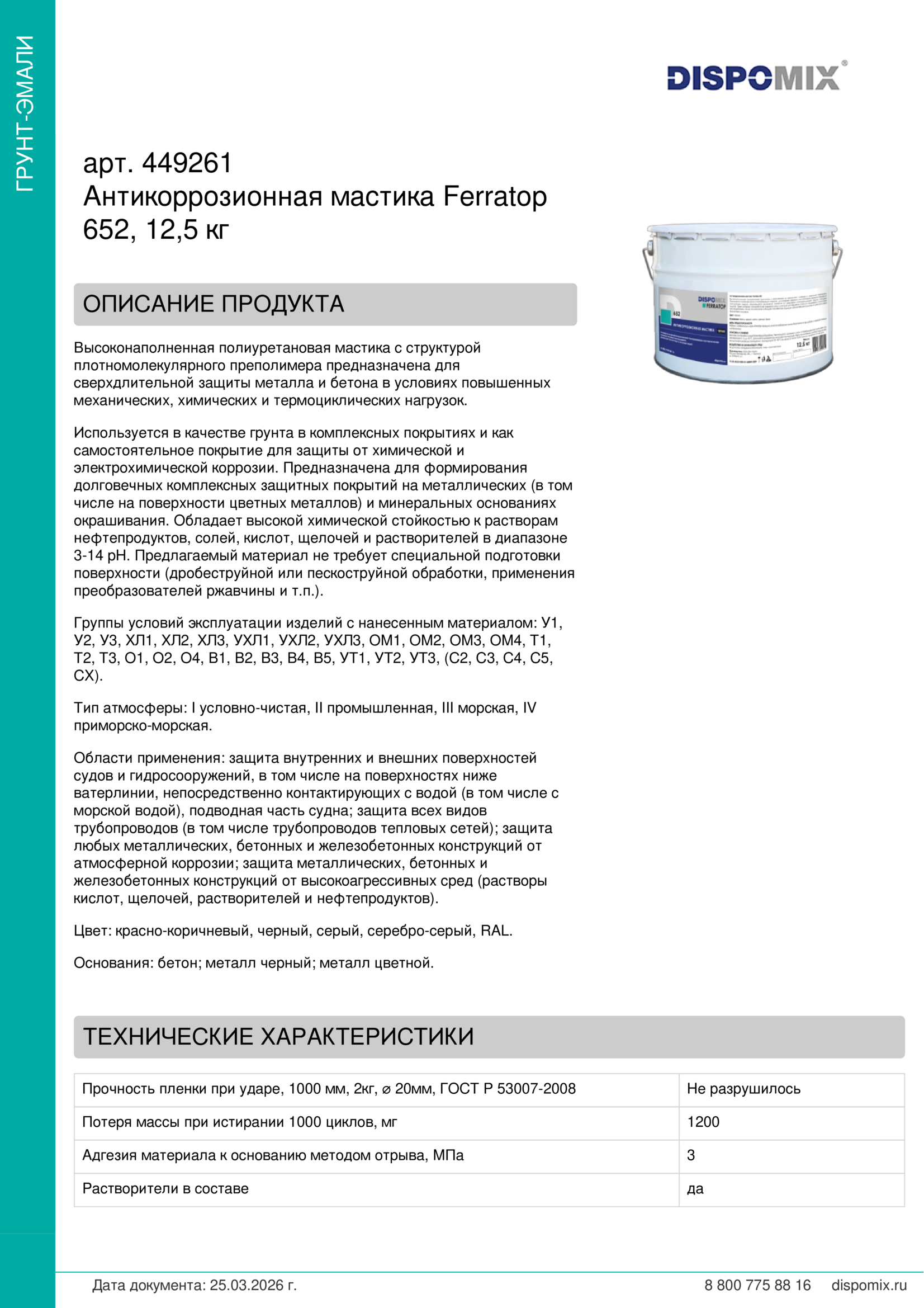 Высоконаполненная полиуретановая мастика с структурой плотномолекулярного преполимера предназначена для сверхдлительной защиты металла и бетона в условиях повышенных механических, химических и термоциклических нагрузок.