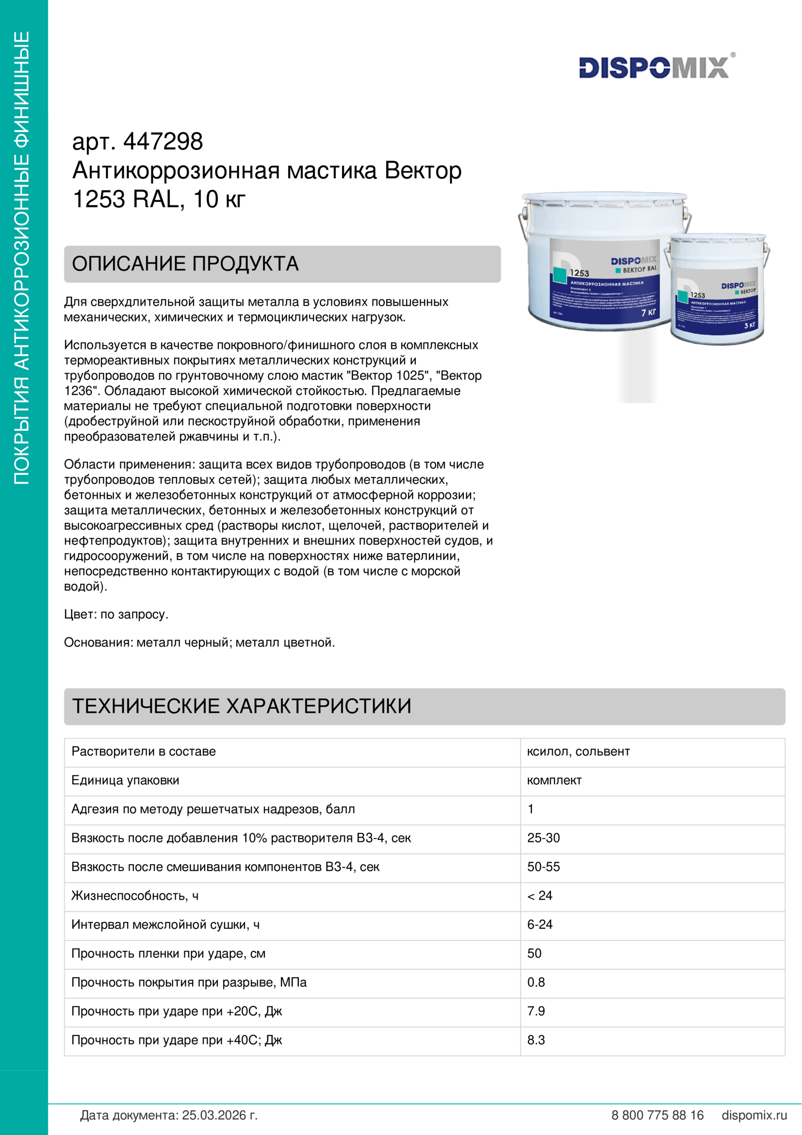 Мастика поставляется в виде двух упаковочного комплекта общим весом 10 кг. Рекомендуется хранение в сухом и проветриваемом помещении при температуре от +5 до +25 ºС. Допускается хранение при минусовой температуре, перед применением требуется выдержать ее компоненты в теплом помещении с температурой 20 – 30 ºС не менее 24 часов.