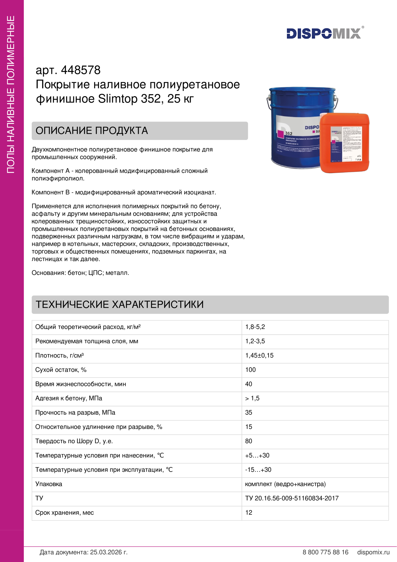 Slimtop 352 поставляется комплектом. Хранить в закрытой заводской упаковке в сухом помещении при комнатной температуре. Срок годности 1 год со дня изготовления.