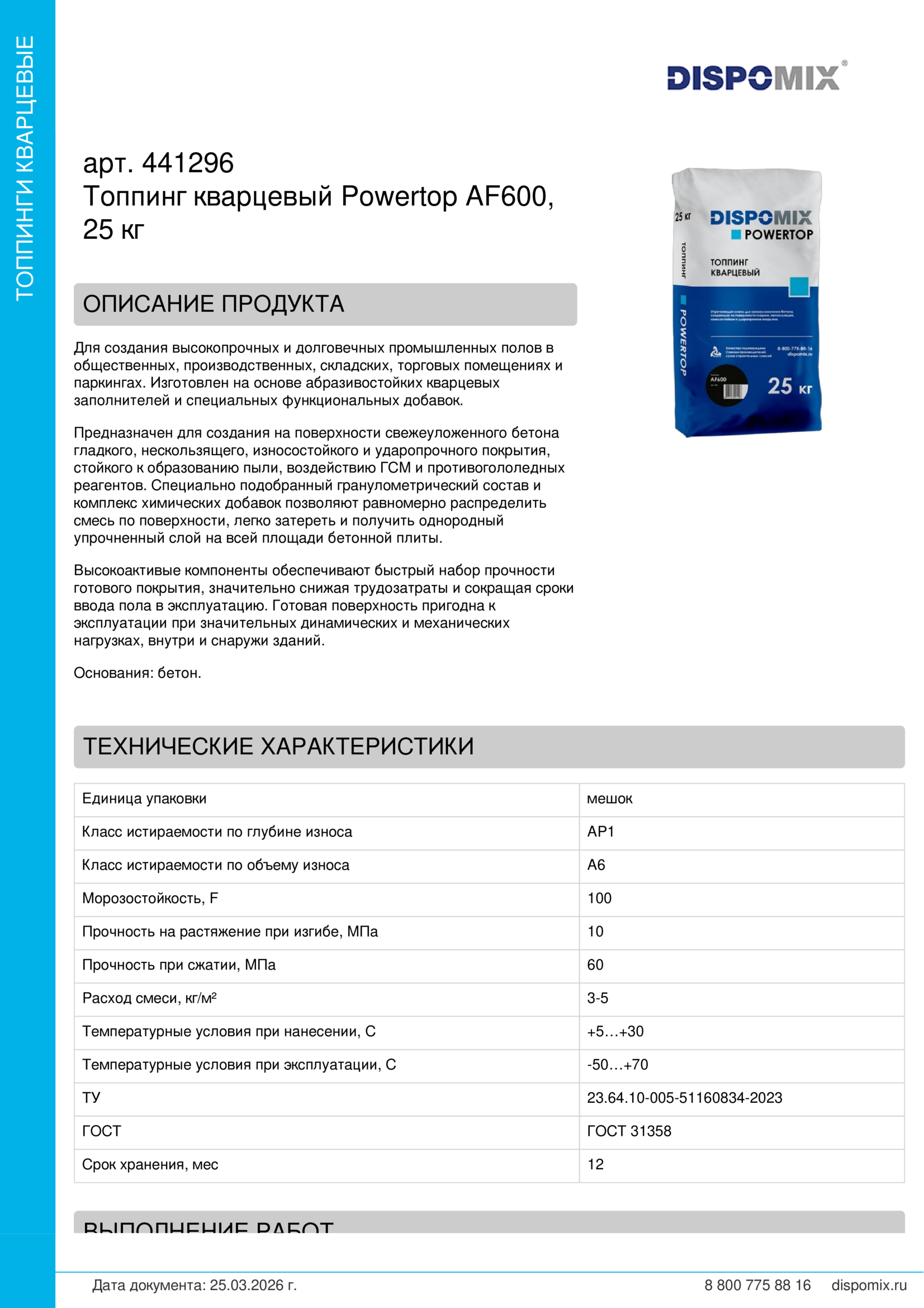 Все рекомендации и технические характеристики верны при температуре окружающей среды +20 °C и относительной влажности воздуха 60 %. Качество материала гарантируется только при точном соблюдении инструкции производителя по технологии применения и требований СНиП и СП. Проверяйте актуальность технического описания, в случае сомнений обратитесь за актуальной версией на dispomix.ru