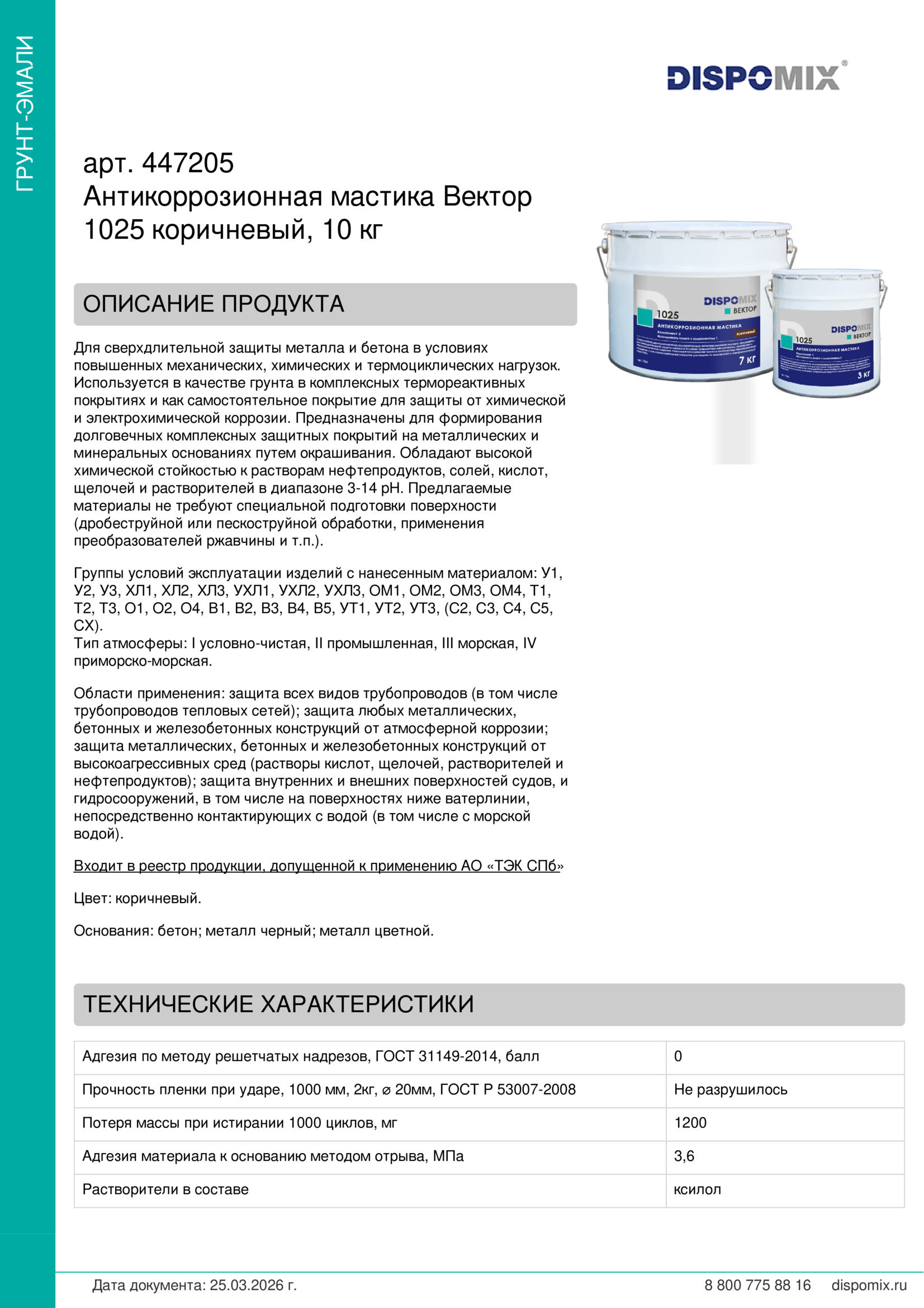 Входит в реестр продукции, допущенной к применению АО «ТЭК СПб»