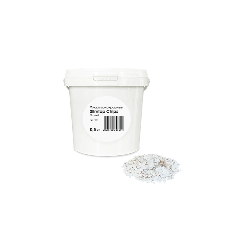 Белые флоки предназначены для создания полимерных покрытий. Типоразмер - 3 мм. Цветные чипсы (флоки) используются для создания декоративных покрытий. Монохромные флоки соответствуют самым высоким требованиям по гигиене и износоустойчивости.