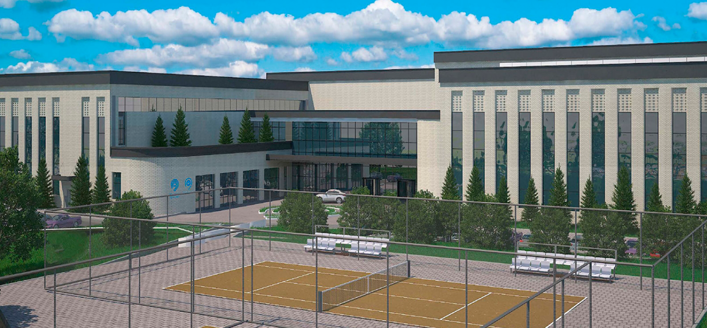 В планах возведение трехэтажного здания, поделенного на несколько блоков. В проекте планируется использование витражного остекления, а также клинкерной плитки разных оттенков и фактур. Общая площадь комплекса составит более 18 тысяч квадратных метров. В нем будет универсальный спортивный и тренажерный залы, зона тенниса, рассчитанная на три поля, две кабины для сквоша, ледовая арена для занятий по хоккею, а также зрительские трибуны и вспомогательные помещения.